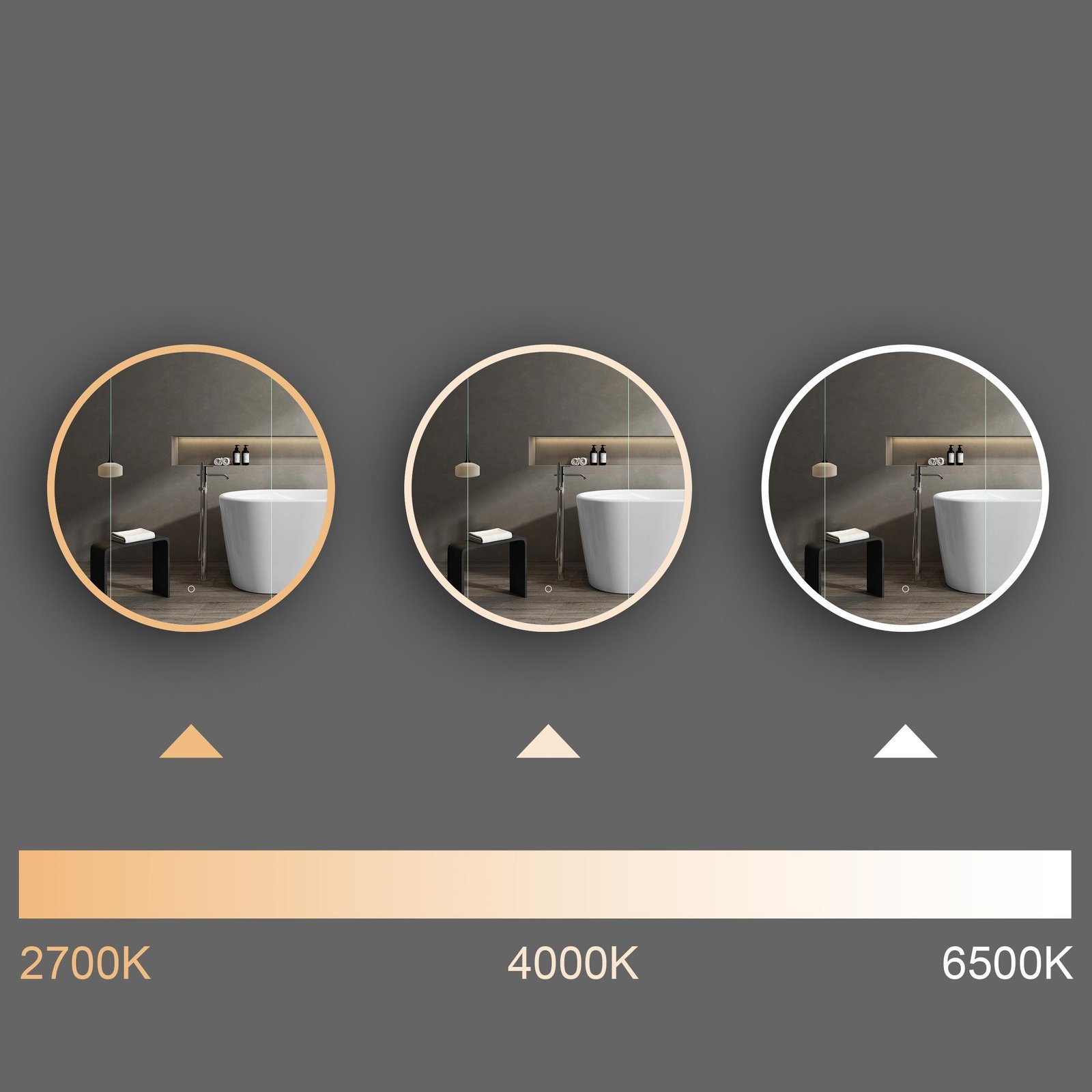 ✓ Šviesos temperatūrą galima pakeisti nuo 2700K iki 6500K, priklausomai nuo veidrodžio naudojimo tikslo ir Jūsų nuotaikos.
