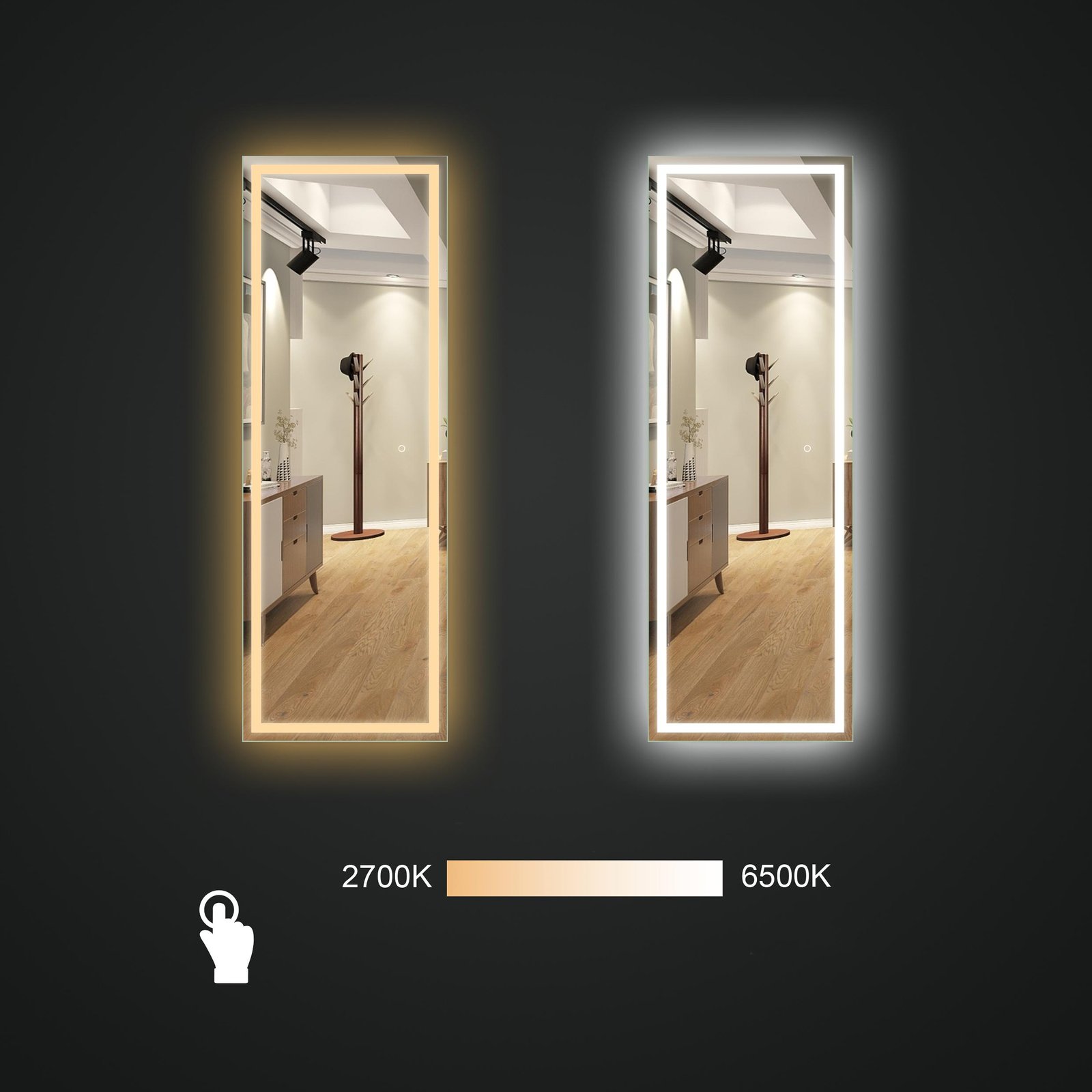 ✓ Šviesos temperatūrą galima pakeisti nuo 2700K iki 6000K, priklausomai nuo veidrodžio naudojimo tikslo ir Jūsų nuotaikos.