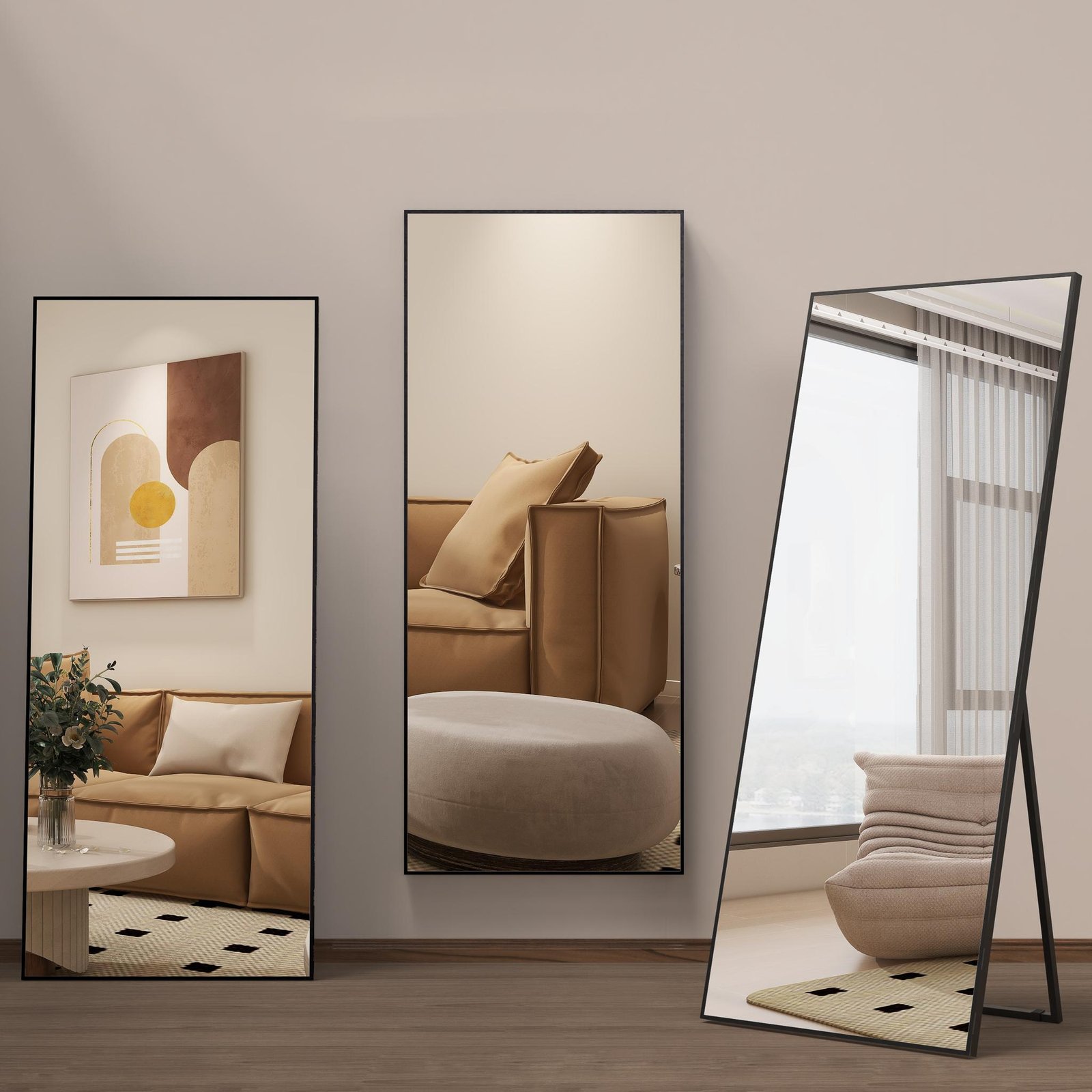 ✓ Turimą veidrodį esant poreikiui galima lengvai perkelti. Jis tinka miegamajam, svetainei, darbo kabinetui, namų sporto salei, ar bet kokiam kitam kambariui.