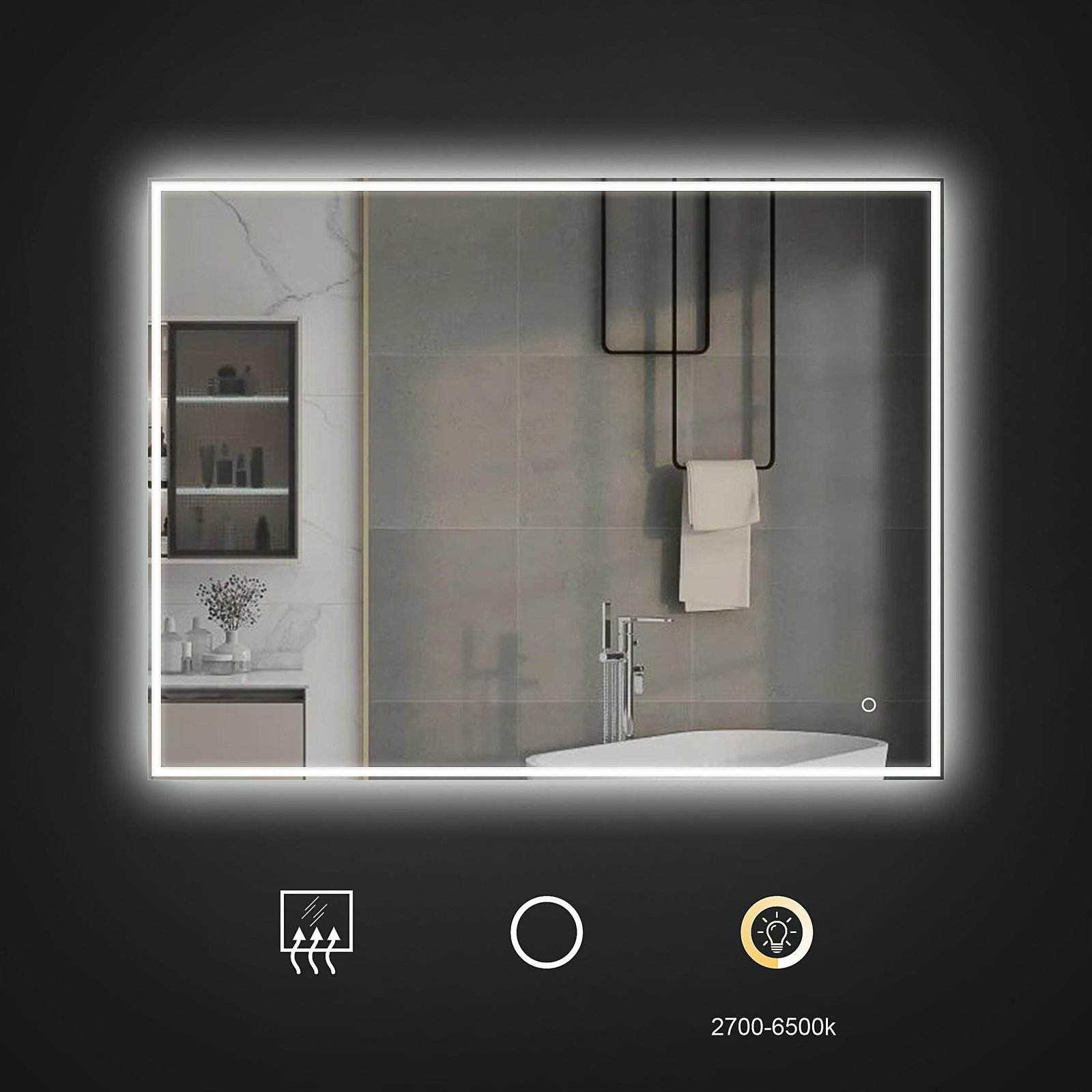 ✓ Šviesos temperatūrą galima pakeisti nuo 3000K iki 6500K, priklausomai nuo veidrodžio naudojimo tikslo ir Jūsų nuotaikos.