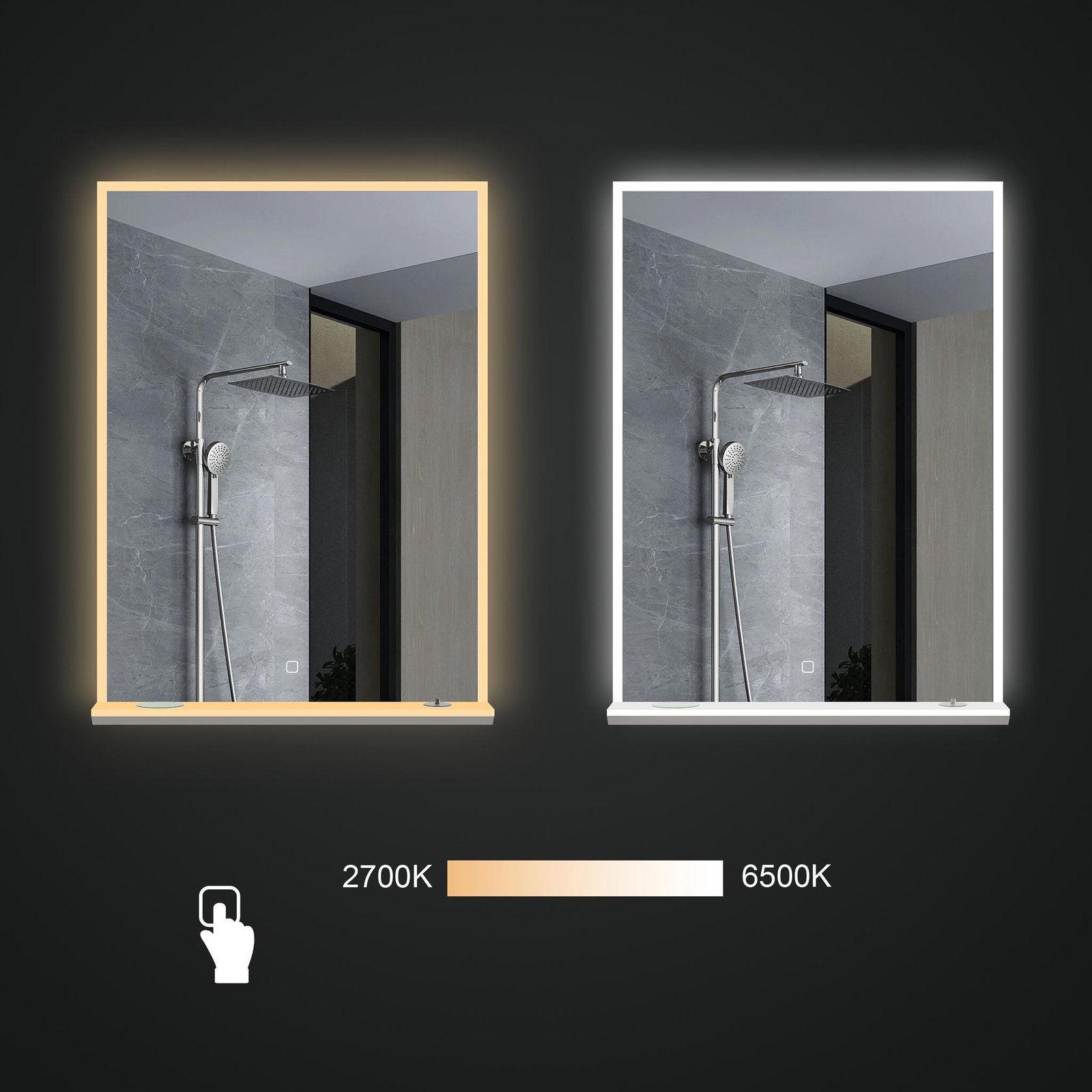 ✓ Šviesos temperatūrą galima pakeisti nuo 2700K iki 6500K, priklausomai nuo veidrodžio naudojimo tikslo ir Jūsų nuotaikos.